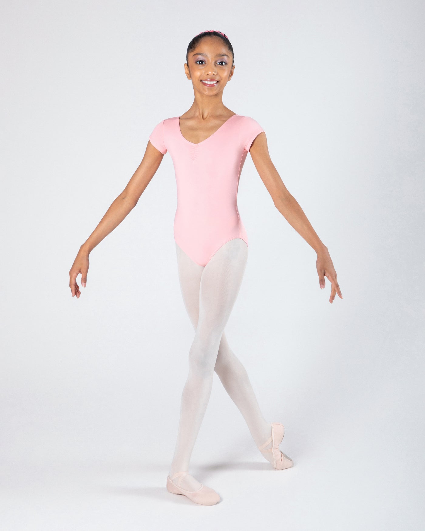 • Delicate gathered front for a classic ballet look