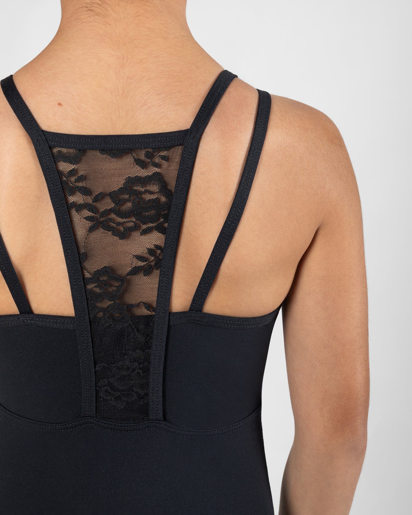 - Elegant front lace panelling with double strap design.