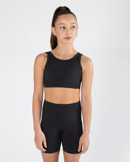 - Seamless ribbed fabric for a smooth, second-skin feel