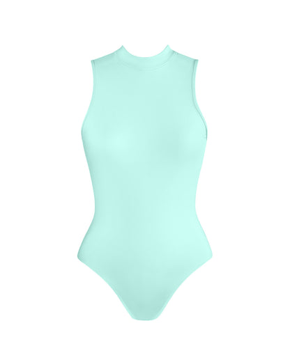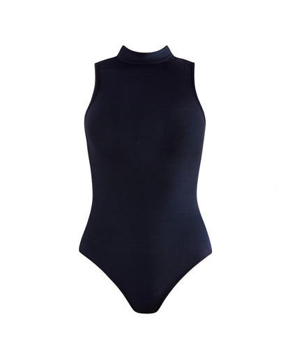 - High neck-line for coverage and support.