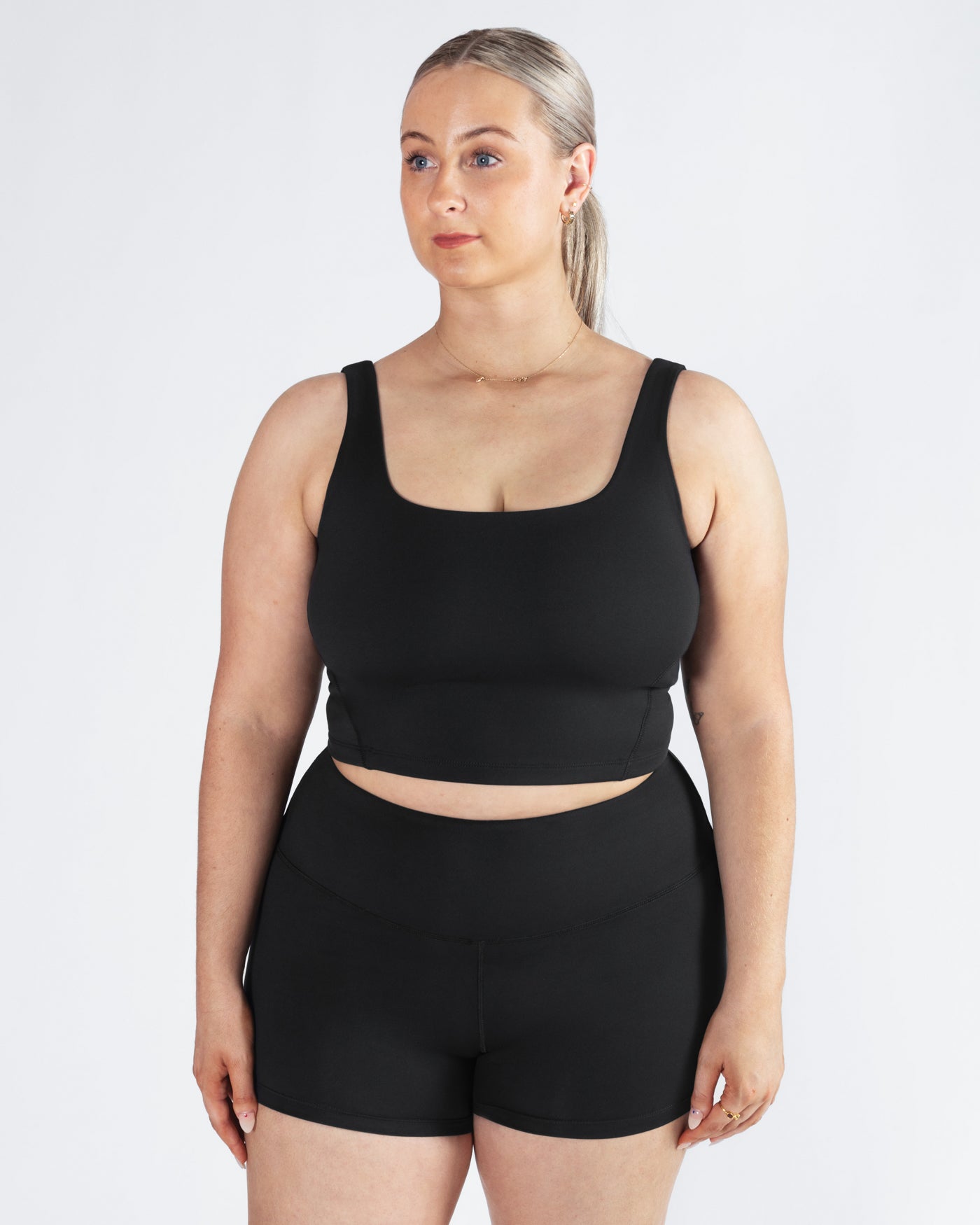 - Cropped length cut above the waist