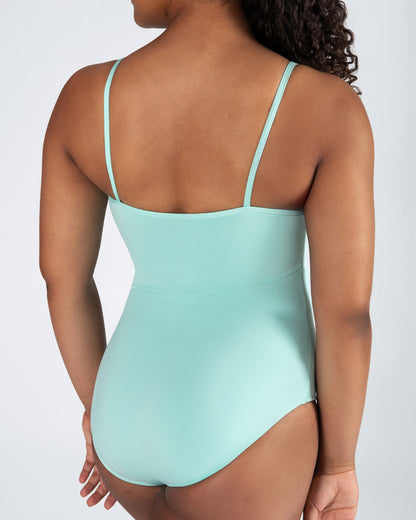 - Refined V cut waist adds elegant detail.