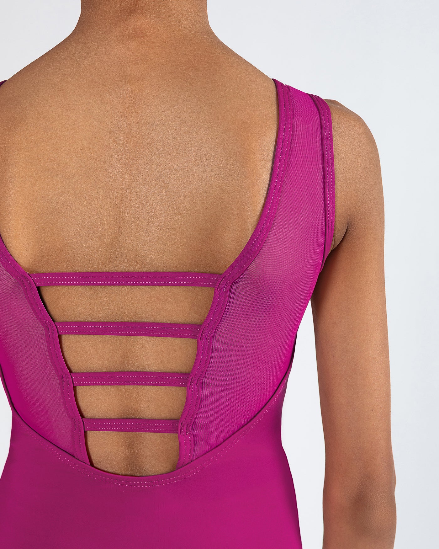 This garment is also crafted with Tech Mesh trims. This premium mesh fabric forms perfectly to the body and increases breathability. As a delicate fabric, take care not to hitch or pull the garment.